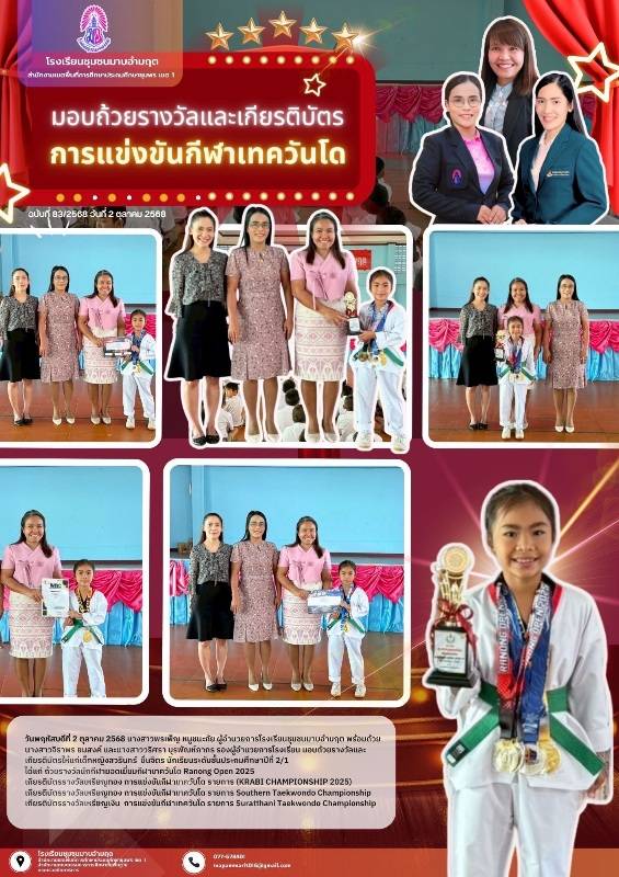 มอบถ้วยรางวัลและเกียรติบัตรการแข่งขันกีฬาเทควันโด